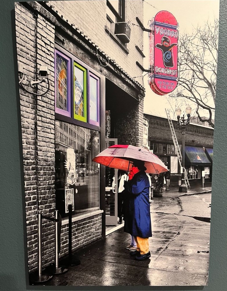 This picture is a depiction of Voodoo Donuts, a Portland institution, and is our first piece of art that represents our new hometown. The playful pinks stand out against a mostly black and white backdrop, a sugary-sweet impact that matches a Voodoo’s absurd donut creations.